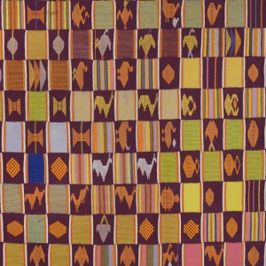 Asante Kente are predominantly non-figurative geometric designs, symbolic of proverbs, historical events, or status. Reserved more strictly for royalty/elite initially.